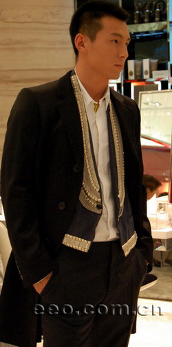 在二件套西服的基礎上增加馬甲。三件式西服套裝展現的是循規守矩、老練的權威人士造型。不過看看有著銀色花紋鑲邊的馬甲,還是在循規守矩平添了份華麗。