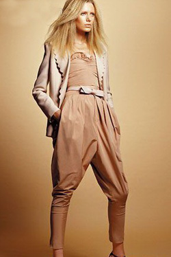 在20世紀80年代,哈倫褲曾經和大墊肩一起風行了一陣子,那時侯,我們一般稱之為燈籠褲,20年一個輪回,在提倡自由休閑的2009年春夏時尚舞臺,哈倫褲經過設計師的一番改良又再度流行起來。