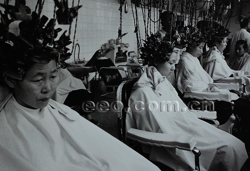 1981年 北京 婦女在新式發廊里燙頭發 (劉香成攝影展)