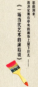 一場當代藝術表演過后,現場觀眾可能會提出很多問題,劇組苦思如何才能給予觀眾滿意的回答。一幅繪畫,一些玩笑,一串舞蹈,哪個才是觀眾想要的答案?“現在越來越多的戲劇需要導演的解釋才能讓觀眾明白是什么意思??墒侨绻枰爩а輪掳胩熘v解自己的作品好讓觀眾們理解導演想要表達的意圖,那他還創做這個戲干嘛呢?干脆把這個環節省略掉,直接做個演后談不就得了!”導演如實說,《一場當代藝術的演后談》的另類之處在于首次將抽象繪畫與戲劇表演過程融為一體,戲中有畫,畫中有戲。同時實驗之處還在于,繪畫的內容完全為當日演出現場與觀眾真實互動的結果。觀眾決定了舞臺中央畫布里的內容。這是對于戲劇觀演關系的一種新模式的大膽探索。