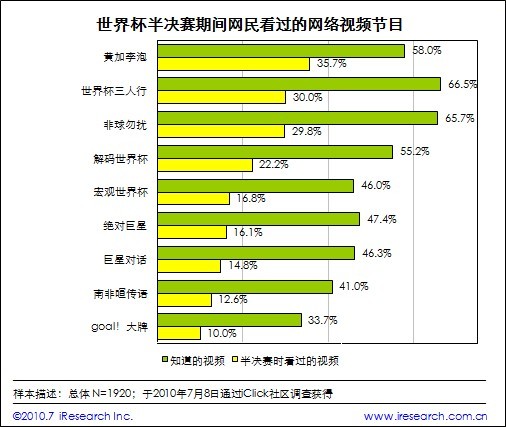 搜狐世界杯頻道推出的視頻內容《世界杯三人行》,超過其他世界杯視頻節目,位居首位,而搜狐的另一檔視頻節目《解碼世界杯》,也取得了不俗的收視成績。