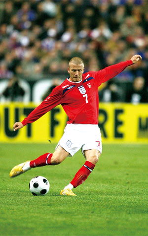 言歸正傳。英格蘭沒捧得歐洲杯,新帥卡佩羅上任重振旗鼓,約了法國在法蘭西球場熱身。這是英國人痛定思痛,尋覓中興的重大日子,法國貴為世界亞軍,國腳遍及歐洲主要聯賽,本來應該將心思放在如何克敵制勝之上。但貝克漢姆的魔力又將世人的注意力吸引到自己身上,連一本正經的卡佩羅也不能免俗,允諾讓他在這場比賽中上場,無他,貝克漢姆是英國人的偶像,過去是,現在是,將來沒準還是。將貝克從千里之外的美國召回倫敦,卻不讓他上場,這個玩笑開不得。他不僅是公眾的寵兒,在隊友中也很有人緣,擔任英格蘭隊長那幾年,將國家隊經營得猶如自家品牌的專賣店,新人入隊無不需要他的扶掖。門將詹姆斯曾經和他一道被麥克拉倫放棄,歸隊后說起貝克漢姆,言語間充滿了對老隊長的感激??ㄅ辶_上任的第一場熱身賽,對手是今夏歐洲杯的東道主之一瑞士,貝克漢姆沒有入選,如今對手換成法國,沒有比這個更適合貝克漢姆在卡佩羅麾下首次登場的舞臺。