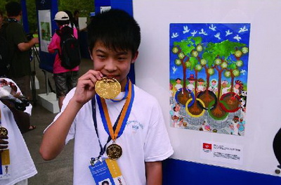 2008年8月8日,就在北京奧運會開幕式啟動之前、在體育競技賽場之外,奧運會的第一塊金牌便由國際奧委會的官員頒發給了本屆奧運會年齡最小的獲獎者——來自香港的11歲兒童。當天,“Visa奧運暢想少兒繪畫大賽”的全球決賽和金牌頒獎儀式,在北京朝陽公園“濱水之舟”廣場舉行,劉浚銘以他的繪畫作品——“心連心,種出美麗夢想”贏得了全體評委的認同,榮獲“2008年Visa奧運暢想少兒繪畫大賽”的全球大獎。