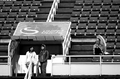 2008年中國網球公開賽于9月20日-28日在北京網球中心舉行。從遍布北京東三環等主干道的宣傳廣告可以看出,今年法網冠軍、剛剛丟掉世界排名第一稱號的伊萬諾維奇,是本屆中網的最大招牌。組織者甚至還特地對外公布了她的航班信息和抵京時間。在第一天的訓練結束后前往新聞中心的路上,伊萬的確感受到了中國網球迷的些許熱情,“伊萬!伊萬!”,有部分鐵桿粉絲認出了這位塞爾維亞美少女??僧斔龔挠柧殘鲎叩街醒肭驁龊?,她剛剛獲得的欣喜感覺就立即消失了——大片大片的看臺空著,場內一片寂靜,這根本不像一場體育比賽的現場?!澳阒?,球員總是希望得到來自觀眾的支持?!笔状螀⒓又芯W的伊萬指了指看臺,搖搖頭。
