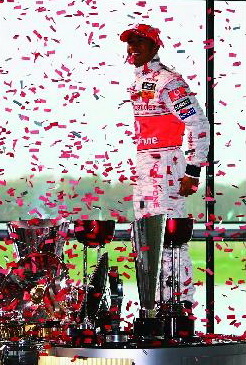 丹尼斯笑了,他激動萬分。巴西站結束后,這位將漢密爾頓帶入F1的邁凱輪車隊老板表示已經萌生退意。的確,太不容易了。收官戰前,漢密爾頓領先法拉利車隊的馬薩達7分之多。馬薩奪冠的前提是,他必須要贏得分站冠軍,且漢密爾頓只能取得第6名以后的成績。漢密爾頓不必爭取冠軍,他只需拿到第5名就能以1分領先馬薩奪冠。但巴西大獎賽的排位賽已經兩極分化,馬薩獲得桿位,而漢密爾頓只是排位第4。更糟的是,比賽還沒有開始就下了一場陣雨,漢密爾頓第一次進站之后已經降到第7名。比賽還有6圈結束時再次降雨,馬薩和漢密爾頓都第三次進站換胎。在還剩下最后兩圈時,紅牛二隊的維特爾超過了漢密爾頓。不久,馬薩以第一的身份沖過終點,法拉利陣營已經開始慶祝了。但20秒后,漢密爾頓在最后一個彎之前超過了沒有更換雨胎的格羅克,重新回到第5的位置。這個戲劇性的變化誰都無法想象,誰也無法接受。