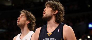 不過,隨著比賽的進行,會發現一個有趣的現象,場上有兩個加索爾。湖人隊的保羅·加索爾和灰熊隊的馬克·加索爾。NBA球衣背后只印姓名中的姓,所以兩人的球衣后面都印著gasol。兩個加索爾還互相對位盯防,馬克·加索爾在防守中用他的大肘子狠狠地頂著保羅·加索爾的背,后者也不甘示弱,生生打開他的肘子,把他推到一邊。這在對抗激烈的比賽中并不罕見,可要知道,這兩個加索爾可是親兄弟??!當保羅·加索爾因不滿灰熊屢敗屢戰的表現時,毅然選擇出走加盟湖人,灰熊隨即像當年引進保羅·加索爾一樣,又從西班牙把保羅·加索爾的弟弟馬克·加索爾帶到了NBA。兩人還同為西班牙男籃國家隊隊友,這真是一個杰出的籃球家庭。
