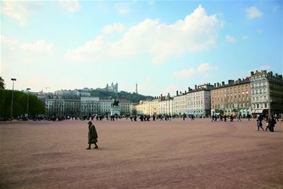 地鐵坐到Bellecour站,出來就是里昂市中心的白萊果廣場(PlaceBellecour)。歐洲有很多地方都會以“廣場”為名,但大多實際上只是一小塊空地,而少數才是中國人想象中的城市廣場。白萊果廣場原來是皇家廣場,自然足夠氣派,它由紅土鋪就,呈粉紅色,與廣場周圍十九世紀老建筑的紅色屋頂相得益彰,我這才明白為何書上里昂被人形容有顆“粉紅色之心”。