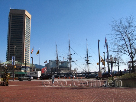 我打算去Inner Harbor(內港)看看,整個巴爾的摩市由那發展起來。順著路標走到那不過十多分鐘。有一個不大的廣場,我聞到海水的味道,久違了,大海!海風很大,路上人出奇的少。海鳥張揚地從身邊飛過,身材豐滿、眼神慵懶。我沿著海邊走去,拿出相機記錄眼前美麗的海洋,藍得那么天真和美好。讓路上一對情侶幫我照相,直到致謝告別才發現他們原來是聾啞人,只是男的可以很艱難地說一點(我還以為他們來自阿拉伯或俄羅斯呢)。美國最好的一點就是什么人都多,就像上課與你同坐的人各種各樣,五顏六色的膚色和頭發,爭奇斗艷的服飾,同性戀、雙性人、帕金森患者和他們先進的儀器、殘疾人……讓你覺得這個世界完整了,并且本來就不應該完美。海港的兩端是一些小店,我隨便在里面逛逛。吃了早上剩下的賽百味。