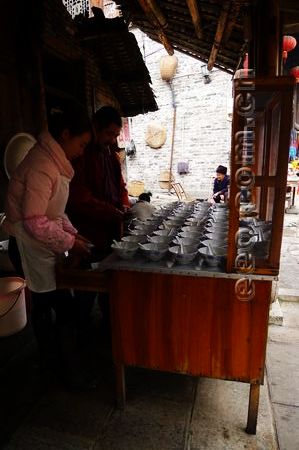 站在一處街角,在小溪篇章中描述過的那種矛盾再次復發——我眼里的王村,福也《芙蓉鎮》,禍也《芙蓉鎮》吧。我有心到當地旅游部門去采訪,想了解《芙蓉鎮》為王村帶來的經濟社會效益,有沒有相對具體的數字。單從旅游經濟角度考慮,王村自然是要向謝晉導演頂禮叩謝的。他讓這個地處偏隅的古來小鎮急速竄紅為中國上世紀八九十年代的興旺旅游點。我絲毫沒有對謝晉導演不敬之意,相反我以為王村是中國電影文化與現實地域發展結合得最好的典型例證之一。要怪只能怪管理建設者的道行太淺,端不住這份福緣,延續不了祖宗遺存的文化香火,更沉淀不出所處時代的映畫聲色的馨香。我只能再次無力地說,受累于多方面的綜合原因,今天的王村是中國典型濫俗旅游的又一樣本,石板街兩側保存尚好的風俗建筑空間,全部淪為販賣假冒偽劣旅游工藝品的門店,讓我厭惡之心頓起。作為電影《芙蓉鎮》核心場景的“胡月英米豆腐店”,不僅毫無特色,而且山寨處處,游客初至已經無法信真哪一間是正宗,辨偽之后,坐在那里,也是一點氣場都感覺不到。