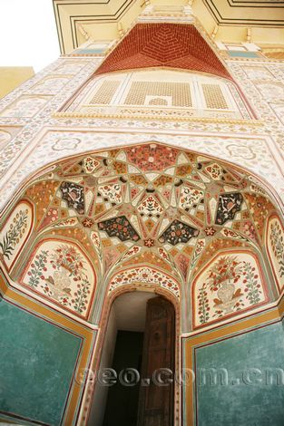 盡管之前在德里和阿格拉已看過不少宮殿與城堡,但面對齋浦爾一個接一個的宮殿,非但沒有審美疲勞,反而能夠驚喜連連。齋浦爾的各種宮殿雖無法與歐洲的皇宮比富貴,也無法與中國的皇宮比規模,但卻以其獨特的設計、精美的裝飾、巧妙的功能征服人心,更特別的是這些宮殿大多是“活著的”,依舊在為現今的齋浦爾王室服務。比如,宮里的王后嬪妃們想觀看慶典、游行,感受街市的熱鬧,但又不方便拋頭露面,于是有了風之宮——它座落在舊城最熱鬧的集市之中。風之宮從正面看風之宮非常雄偉,高十幾米,寬幾十米,嵌有935個半八角形、帶有細密窗格的窗戶;側面看起來卻非常單薄,只有一間屋子的厚度。與其說是宮殿,不如說是一堵掛滿窗戶的大屏風。因為這宮殿壓根兒就不是用來住的,其功能相當于體育場看臺或劇院包廂,每逢節慶集會,宮中女眷們便會躲在那些細密的窗格背后,觀看隆重游行與慶典,觀察喧鬧的市井民生,而街市上的人卻無法窺探她們的尊容。而且,據說眾多的窗戶讓宮殿超級涼爽,站在任何一個角落都能吹到涼風,所以得名“風之宮”。為了避暑,王室則在城區一個人工湖中央建起一個小島,全島只有一個建筑,那就是“水之宮”。這個宮殿四面環水,必須乘船進入,可惜如今已無法登岸參觀。