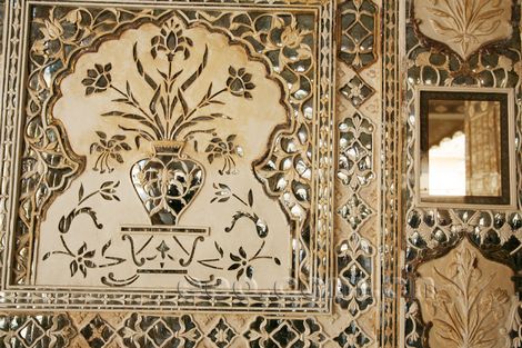 舊城里規模最大、最有看頭、色彩最艷麗的要數城市宮殿。宮殿處于城市中央,與鬧市僅一墻之隔,共有八道宮門,通往舊城不同街道。宮殿用紅黃分隔成兩種宮殿群,黃色的是伊斯蘭風格的月亮宮殿,齋浦爾現任國王Sawai Bhawani Singh家族仍居住其中,因此謝絕參觀。開放的宮殿中有一個美麗的小庭院,四道雕刻著精美絕倫、色彩絢爛的浮雕,綠門代表春季、蓮花門代表夏季、孔雀門代表秋季、玫瑰門代表冬季??晒﹨⒂^的宮殿大多被開辟為博物館,展出歷代國王的私人珍藏,包括槍械、服飾、藝術品以及各種文物。其中令人印象深刻的是兩個巨大的銀瓶,高1.6米,重345公斤,用來裝恒河的圣水。因為瑪多.辛格二世是虔誠的印度教徒,每天清晨必用恒河圣水沐浴祈禱,為此,1902年他遠赴英格蘭參加愛德華七世加冕禮時,竟隨身運載了8000多升“洗澡水”。