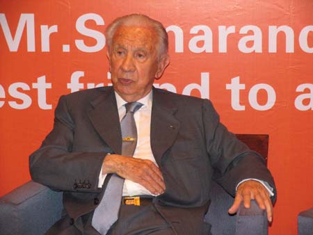 雖已87歲高齡,但滿頭銀發的薩翁精神矍鑠、面色紅潤。在助聽器的幫助下,他不時與身邊的人交流。27日上午,當他陪同西班牙國王卡洛斯一世來到中國網通全球網管中心參觀時,受到在場人員的熱烈歡迎。