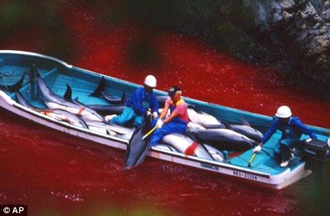 每年在日本,有23000頭海豚被屠殺!影片中所作的街頭訪問顯示,絕大部分日本市民并不知情。而日本政府相關機構給出的解釋竟是“控制生態危害”,他們指稱鯨魚和海豚(屬小型鯨類)吃掉了數量驚人的魚群,而這些魚群本可以成為當地的漁業產品。