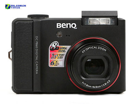 明基P860搭載了一塊1/1.8英寸CCD,有效像素達到了800萬,最大可輸出3264 x 2448像素的畫面。同時配備一枚6倍光學變焦鏡頭,實際等效焦距為37-222mm,最大光圈F2.8-F4.8。我們注意到這次明基P860的這枚6倍光變鏡頭并沒有標注SMC的字樣,所以所以使用的應該不是賓得的鏡頭。