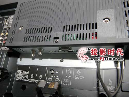 東芝37H3000液晶電視增加的eSATA接口被設置在了電視的背面,并且預留有連接電纜,因此如果想要交換硬盤的話,可以只需要取下硬盤連接器就可以了。