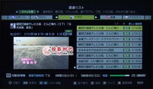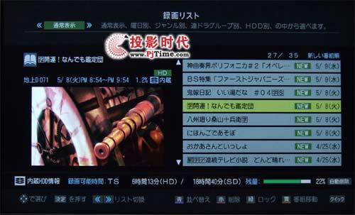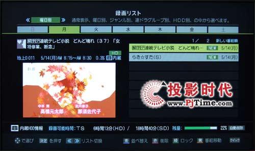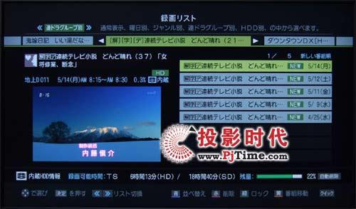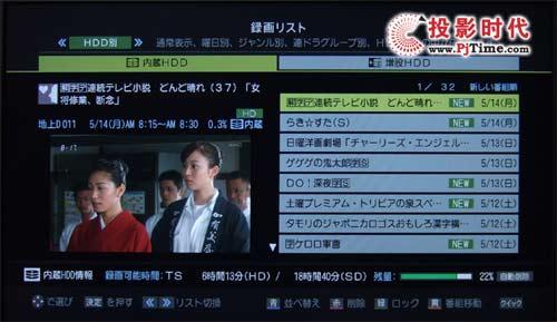 接下來讓我們測試一下系統功能,不過由于不能像使用記錄機那樣進行編輯,因此在使用的時候只能一個接著一個得進行節目睥編輯。選擇節目時如果按下黃色按鍵就會顯示出了菜單。另外就是通過eSATAi接口你可以方便得移動錄制好的電視節目,并且可以隨時進行回放,而在播放的時候復制也可以同時進行。這一次我試著錄制了約1小時的TS電視,向外接硬盤移動則花了約9分鐘左右。到底是eSATA規格的硬盤,其速度不是光盤可比的。