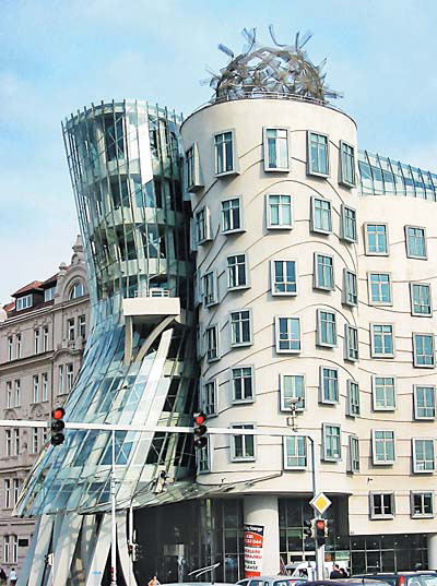捷克首都布拉格最受爭議的后現代結構主義建筑之一,坐落于沃爾塔瓦河畔。1992年由美國建筑師法蘭克·格里和捷克建筑師米盧尼奇合作設計,于1995年完成。