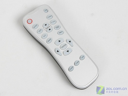 lenovo聯想C10投影機的遙控器設計類似于電視遙控器,透明橡膠的按鍵,銀色磨砂外殼十分有檔次。而且手感非常不錯,與投影機的漂亮外觀非常搭配。這款遙控器除了常規的開關機操作和菜單操作之外還具有輸入切換、上下選擇鍵、確定鍵等快捷操作。