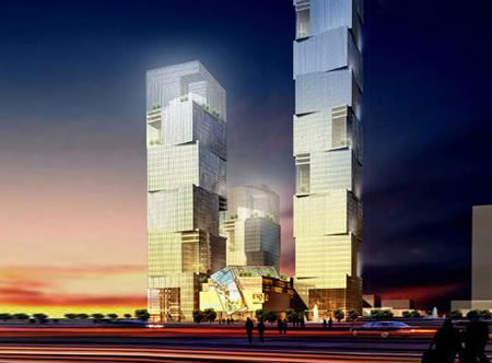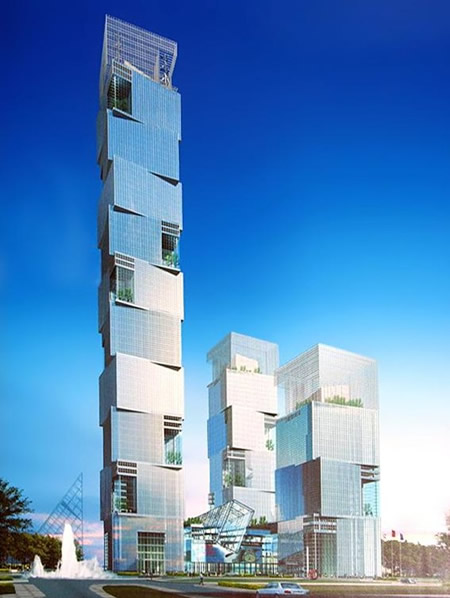 這座摩天大樓采用3座設計,其它2座分別是198公尺和136公尺,頂部有空中餐廳,在巨大的玻璃墻內旋轉;每一部分都如同積木,迭合在一起,來自于Atkins的設計讓我們折服。