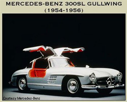 梅塞德斯奔馳300SL鷗翼制造于1954年至1956年。他是由賽車手如Juan Manuel Fangio和Stirling Moss駕駛的SL級汽車的一個組成部分。而在勒芒賽中出現的鷗翼版本則是首輛在公路賽中應用博施機械油注射劑的汽車。梅塞德斯使得鷗翼成為了世界上最稀有(只有1400輛)和奢華的汽車。他提高了廣泛的客戶定制選擇,這包括3個可利用的懸掛系統和個人定制的涂漆――而大約50年后的今天,梅塞德斯才復興了Maybach這個可以完全個人化的超豪華品牌。