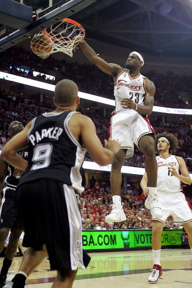 帕克的速度令騎士難以防守,下半場開始后不久,帕克撿到籃板后直接發動快攻,他左手當帕夫洛維奇擋在身后,強行上籃得分,帕夫洛維奇還賠上一次犯規,帕克加罰不中,馬刺以44-36領先。本節過半時,帕克再次三分命中,接著鄧肯和霍里各罰中一球,馬刺以52-42取得10分的優勢。詹姆斯仍然未能找到感覺,本節他7投僅1中,憑借吉布森在本節結束前投中的一記三分,騎士才將比分追成52-60。