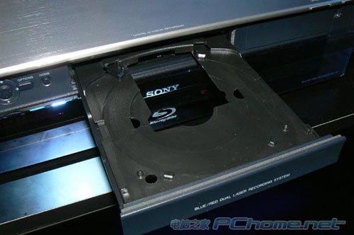 BDZ-V并沒有和PS3一樣采用吸入式設計還是采用傳統光驅設計這是由于需要兼容多種光盤,不過還是做了相當多的創新,當按動表面的出倉按鈕的時候前面的面板會降下來,彈出光驅托盤。