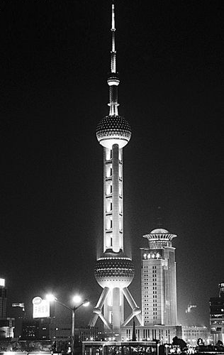 比較典型的是在拍攝城市夜景時,除了畫面中建筑、街道或其他亮度較高的內容占據畫面主要面積外,要防止曝光過度主要依靠兩個手段,一個是使用點測光來對主要表現對象測光曝光;還有一個方法就是根據實際情況,利用曝光補償來適當減少曝光量。一般在拍攝的畫面中(尤其是畫面中間測光敏感部位)占據大面積天空時,往往需要減少2檔甚至更多的曝光量。附圖《東方明珠電視塔夜景》在拍攝時作了負1.7檔的曝光補償,所以畫面的影調比較理想,不然將嚴重曝光過度。除了拍攝夜景,在拍攝其他風光類題材,如夏季濃密的樹陰,逆光狀態下的山脈等都要適當借助利用曝光負補償來減少曝光量。還有拍攝身穿黑色服裝的人物,拍攝深色調的紡織品等,都需減少曝光量才有可能獲得正常的影調還原。因為數碼相機也是通過測量被攝對象反射光來決定曝光量,在處理明顯亮度偏低的對象時攝影者如果不作相應曝光負補償,最后得到的將是中性灰影調。很顯然,將明顯為黑色或者深色調的對象最后轉化為中性灰為主調的畫面是很難令人接受的。