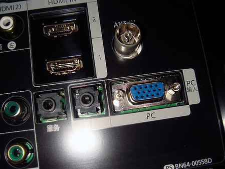 三星40M81B液晶電視擁有非常豐富的接口,側面配備了1個HDMI數字接口、1個耳機接口、1個S端子、1個AV接口;后面配置了1個內置天線(R/F)接口、2個分量端子、2個HDMI數字接口、1個PC輸入接口、1組音頻輸出、1個S232C接口,非常實用。這款電視是為數不多的配備3個HDMI數字的電視之一。