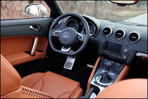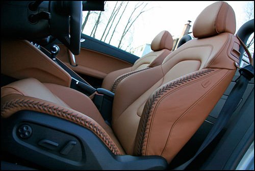 新款TT帶來了幾處新的接觸體驗,如(選配)真皮儀表罩、手閘桿、扶手和控制臺以及平底的方向盤。這些細節與TT敞篷車的新式標志性的籃球式縫綴的真皮座椅組合在一起,顯得很華麗,而那些鋁合金通風孔則是與過去銜接的紐帶,雖然它無例外仍是同級車里最漂亮的內飾,但我會懷念舊款車的氣氛。盡管如此,當我們上車并開始駕駛時,新款TT就是與外界隔絕的另一個世界,表現更好。- 可望亦可及 | 2008-11-04