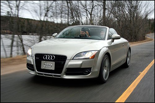 實際上,我要收回前面的話,因為在TT的袖子上還有另一個聰明的技術。這是TT第一次配置了電磁減震器,這個裝置首次出現在RS4上,如果你要買一輛TT,這個售價1,700加元的選配是絕對必需的。并不是因為標配裝置差,沒有這種獨特的減震器,TT的行駛也比以前的車型沉著的多,而且還有點吸收能力,但有了這種電磁減震器,它就變成了完全分離的另一個世界。