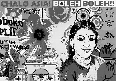經濟觀察報 特約作者 葉睿童 KetnaPate,l968年生于烏干達,曾經在倫敦和巴爾的摩做建筑師,她在新加坡生活了15年,并在這里開始了她的藝術生涯,呈現在眼前的AsiaPop(亞洲波普)系列作品正是她對于生活的這座城市的觀察和表達,她的這一系列拼貼畫聚焦于流行文化、日常生活和多人種混居的城市景觀,在她的作品中,英文、漢字、電視肥皂劇、寶萊塢的印度演員、華人功夫明星混雜共生,色彩絢麗俗艷。作為2008年新加坡藝術博覽會的參展單位中唯一的藝術家工作室,KetnaPate咖喱一般辛辣的畫面色彩再現了本地多人種共生的流行文化。