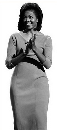 作為在金融危機中上任的美國首位非裔總統奧巴馬的夫人,年薪超過30萬美元的標準中產階級米歇爾清楚自己的衣櫥該怎樣配合身為民主黨的總統丈夫。美國總統競選決勝負的11月4日,米歇爾穿了件紅黑相間的U字領、腰帶十字交叉的連衣裙。時尚圈對其惡評如潮,心直口快的人稱這件裙子就像火山爆發,委婉些的人則認為這是個“無傷大雅的錯誤”。但是,裙子出自NarcisoRodriguez之手,他是少數族裔(有古巴血統)的美國設計師,米歇爾的選擇絕對是政治正確的。之前2天,奧巴馬的外婆去世,在非洲為親人服喪要穿紅黑兩色的衣服,米歇爾的裙子表達了她的哀思,更為丈夫奧巴馬打出一張漂亮的親情牌。高端購物中心巴尼斯紐約精品店時裝部總監說,米歇爾借這條裙子傳達了一個信息,“做你自己,不要被旁人左右”。