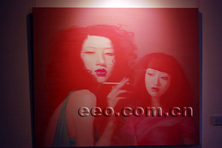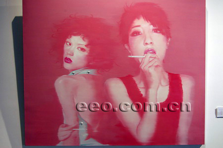 經濟觀察網 馮娟/文 關于藝術家蔣叢憶的個人信息,媒體上似乎并不多。但是一進掛著眾多畫家作品的展廳,她的系列作品《北京美女》卻在第一眼吸引了我。炫目的粉色系畫作,這是一種很可愛天真的女人味兒顏色,但是畫中所描繪的卻是妖嬈,性感,完全背離天真的另一種感覺的女主人公形象。
