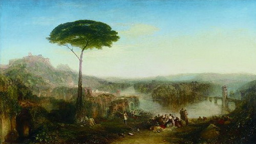 “……很藍的海畫成紫色,太陽下一種來自太陽的更藍的暖水汽襯托出橄欖樹影子之暗,而樹葉的光或整體在影子中是中安靜的灰色。美麗的深綠色仍然溫暖,中間的樹因為距離一部分變得帶藍色,溝渠帶紅色,前景光影子中呈灰色?!边@是透納曾經記錄下的一段自己對意大利的光和色的印象。