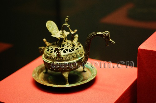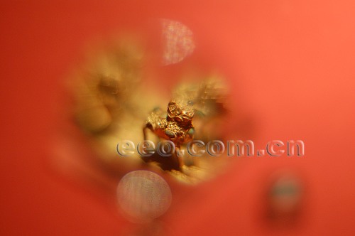 秦漢時期工藝品(圖為用放大鏡觀看到的長度大約為1厘米的微型金羊)