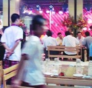 在這條街上最大的店鋪——磊磊燒烤店外,一個長達十多米的巨型烤爐上炭火正旺,三個師傅同時烤起數百只羊肉串。店內,早有上百球迷相聚于此,陶醉于這場盛宴之中。金色的冰啤、綠色的毛豆、紅色的花生以及五顏六色的各類燒烤,絲毫不少于看臺上球迷身上的粉彩;歡笑聲、叫喝聲、玩鬧聲交織在一起,一點不亞于球場上的“嗚嗚祖啦”。