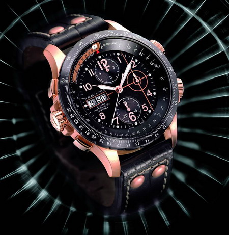 略帶圓弧線條的方形表殼在黑色陶瓷的映襯下顯得更加寬大,表帶和表殼融為一體,玫瑰金色的刻度和指針顯得非常醒目。