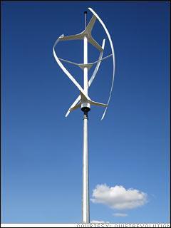 如果你隨便在路上問一個人:你覺得風力發電如何?,答案大概會是一面倒的支持。但如果你改成問:在你家旁邊插一個風力發電機如何?,那答案可能就全是反對了。這主要是它帶來一些環境問題,如視覺污染、噪音和震動。但由英國Quietrevolution公司制造的一種新型垂直風力發電機QR5正好解決了這兩個問題——一方面它利用特殊地葉片形狀來大大地減低噪音和震動,另一方面它也將風力發電機的現代感一路推到了后現代藝術的領域。