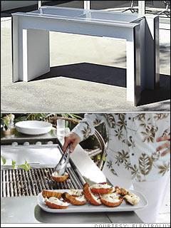 的確,杰皮-約特卓自助燒烤(Jeppe Utzon BBQ)能烤漢堡。但伊萊克斯(Electrolux)還希望它能改變你對其公司品牌的看法。澳大利亞家電生產商伊萊克斯委托悉尼歌劇院的建筑師約翰-約特卓的36歲的大孫子杰皮-約特卓制造了這一獨特的“榮尚產品”——售價7100美元的自助燒烤,已經向澳大利亞出售了二套最初產品。約特卓用不銹鋼桌子配備人造大理石“可麗耐(CORIAN)"桌面,桌面滑出后,可顯示菱形燒烤架和輕便電爐。當你不想燒烤時,將桌面滑進去,就可以將它變成時髦的室外餐桌。