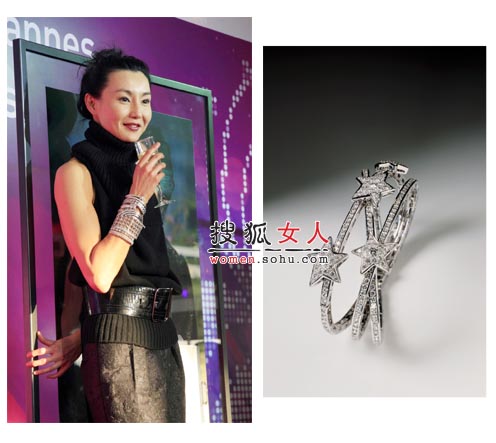 5月18日,張曼玉身著香奈兒07/08秋冬高級成衣亮相影展酒會,佩戴多只香奈兒高級珠寶手鐲,溫婉低調,氣度非凡。