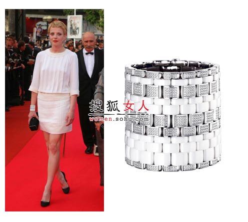 佩戴香奈兒高級珠寶:"La Pluie"18K白金及鉆石耳環,"Ultra"手鐲18K白金及高科技精密陶瓷鑲嵌鉆石。