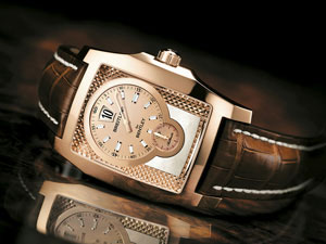 明星自動上鏈兩地時間計時表配備自動上鏈兩地時間計時機芯, 不銹鋼表殼直徑42毫米,擁有防反光處理抗磨損拱型藍寶石水晶玻璃表鏡,配襯銀色表盤加上紅金指針及小時刻度,防水深度達30米,配搭黑色鱷魚皮表帶連折疊式表扣。全球限量100只。