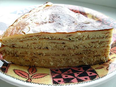 以前做餅的準備工作是一種真正的儀式—被認為是一種很神秘的事情。主婦們都避開家人及其他人悄悄地做。有些主婦晚上在河邊、湖畔或井旁發面,還有的在月光下自家院子里做。酵母在溫水里化開,然后慢慢加人牛奶和面粉,和面。面和好后,鍋上蓋個毛巾,放到暖和的地方。面發起來后,再把剩下的那些都放進去,小心揉好,再放到暖和的地方;當面第二次發好后,用小塊的干白樺劈柴生好爐子,就可以煎餅了。均勻的火勢像一個魔法師,使面上布滿了小孔,讓它變紅,格外誘人。當煎餅時,廚房里彌漫著多么好聞的味道??!餅趁熱端上桌,配上酸奶油、黃油、魚子醬或果醬、蜂蜜。