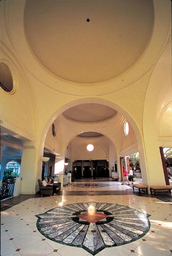 相比這里的鬧中取靜和賓至如歸,更靠近海灘的喜來登(Shareton Wakiki)則是另外一番活躍的景象。穿過酒店的大堂和游泳池就是熱力四射的沙灘,彩色的遮陽傘,布料少而又少的比基尼,緊貼沙灘的躺椅,在沙灘上散步的鴿子?這里幾乎熱鬧到混亂的程度,但正是這樣的無序而安全讓在這里享樂的人可以完全沒有顧忌,享受和很多人在一起的熱鬧卻完全不會有人注意到你。整個白天都有穿著泳衣和沙灘褲的客人在酒店里穿梭;而到了晚上,這里卻滿是淑女和紳士,穿著光鮮的晚禮服和正裝在海邊享受燭光晚餐。當然,夜還只是剛剛開始,和酒店只隔了一條馬路的威基基大街將有更誘人的不眠夜。