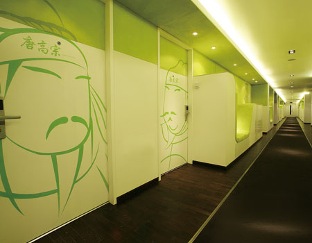 這家名叫皇家驛站(TheEmperor)的酒店,是中國大陸第一家成為“設計酒店(DesignHo-tel)”成員的酒店。盡管以9結尾的房間定價和以7結尾的餐飲定價聽起來過于玄虛(9在《易經》中是最大的陽數,其次是7),但與以皇帝名字命名房間的做法,倒是相得益彰;反正在博大精深的中國文化面前暈頭轉向、找不著房間的,還是以國際友人為主。