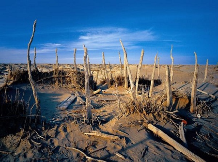 臨近現代的地層中出現干枯的焦木,而且僅僅壓在淺水生物之上,如此沒有過渡的轉折,是不是在提醒我們:樓蘭古城遭遇了一場突發而至的災難?