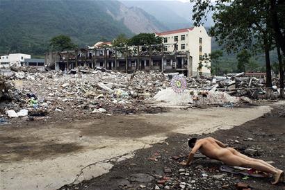 經濟觀察報:裸體本身在中國就比較敏感,俯臥撐從2008年開始成為敏感熱詞,你又專門到出大事的地方做裸體俯臥撐,沒人封殺你嗎?