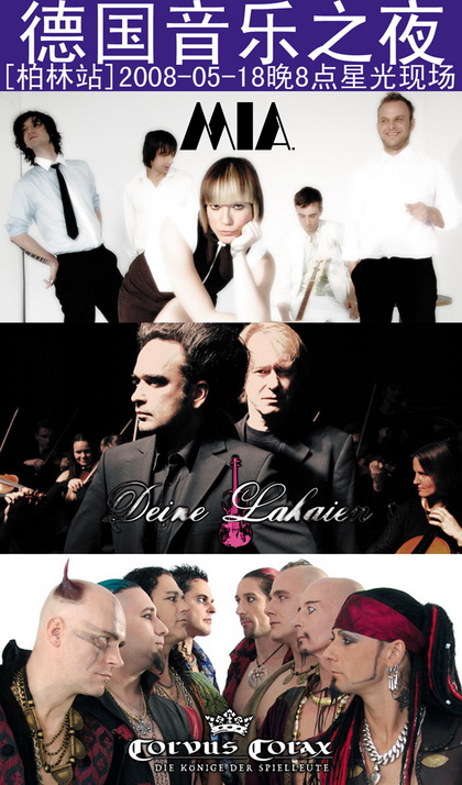 經濟觀察報 記者 張晶 始于2007年的“德中同行”是一個為期3年的德中文化與音樂交流系列活動,由德國總統克勒和中國國家主席胡錦濤共同擔任監護人。到2010年,活動將分別在中國的6個大都市舉辦,核心活動是9天的露天音樂文化節。第2屆“德中同行”將于2008年5月9日至17日在重慶舉辦,諸多中/德知名藝人和樂團將參加為期9天的音樂盛事,作為受邀來華參加此次交流活動的音樂家無疑在音樂和文化上是具有鮮明代表性的。隨之將有3支參演的德國頂級音樂團體于5月18日抵京,并在星光現場展示德國最新的現代音樂。