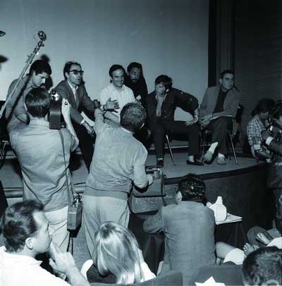 1968年戛納電影節上特呂弗、戈達爾、路易·馬勒、羅曼·波蘭斯等人接受記者采訪