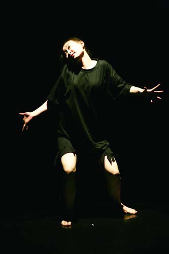 經濟觀察報 記者 陸曉茵 今年已經是文慧和吳文光的草場地工作坊第三年舉辦 ”五月節“了(草場地五月藝術展示),艾未未設計的灰墻院子里,快到午夜了還依然熱鬧。劇場里,王春蕾和她的同伴們正在展示他們的作品《翼·義》:漆黑的劇場里,3個黑衣演員出場并不斷向四周延伸,隨后,更多的黑影冒出來、直到舞臺整個被黑暗包圍,他們代表了黑暗;觀眾的面目一直被投影在舞臺背后的屏幕上,他們象征著光明。突然,”黑暗“停止了無序的蔓延,他們聚集起來,呈現了一段短暫而精彩的群舞。群舞之間,屏幕上出現一道魔幻的光芒,仿佛試圖掩蓋觀眾的面龐,而觀眾卻依然陶醉在群舞一剎那的光輝中,不知黑暗馬上就將把他們”吞噬“——群舞過后,”黑影 “們逐漸侵入到觀眾之中,一切光明頃刻消失。黑暗吞食了光明而帶來的寂靜之后,一道白光亮起,純潔無比的白衣小女孩從舞臺中心獲得了”重生“。